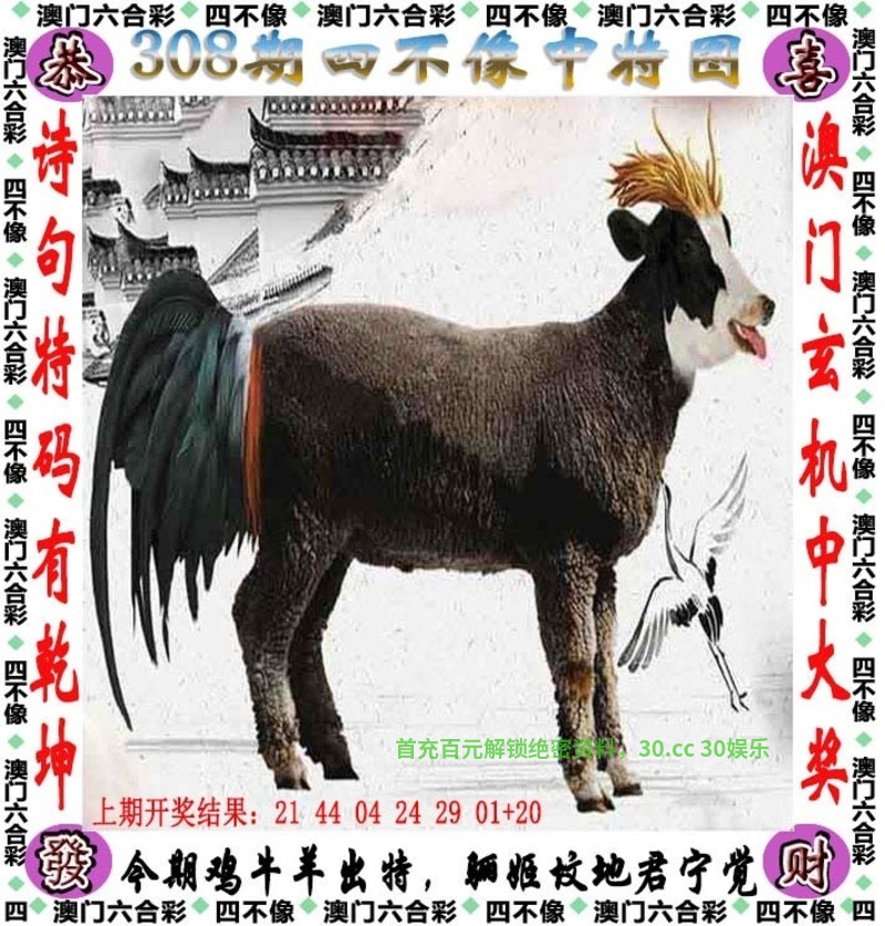 | 308期:【轻语解四不像】 【本期七肖】鸡牛羊兔虎马鼠 【本期四肖】鸡牛羊兔 【平特一尾】555尾 |